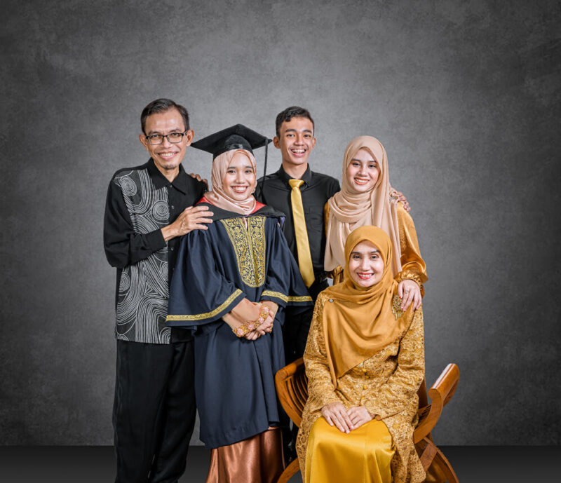 I offer professional graduation photography services in Malaysia, capturing this proud milestone with both classic studio portraits and creative outdoor images. Whether you’re celebrating with your family in a polished studio setup or prefer a more modern, lifestyle feel outdoors, each session is designed to highlight your achievement